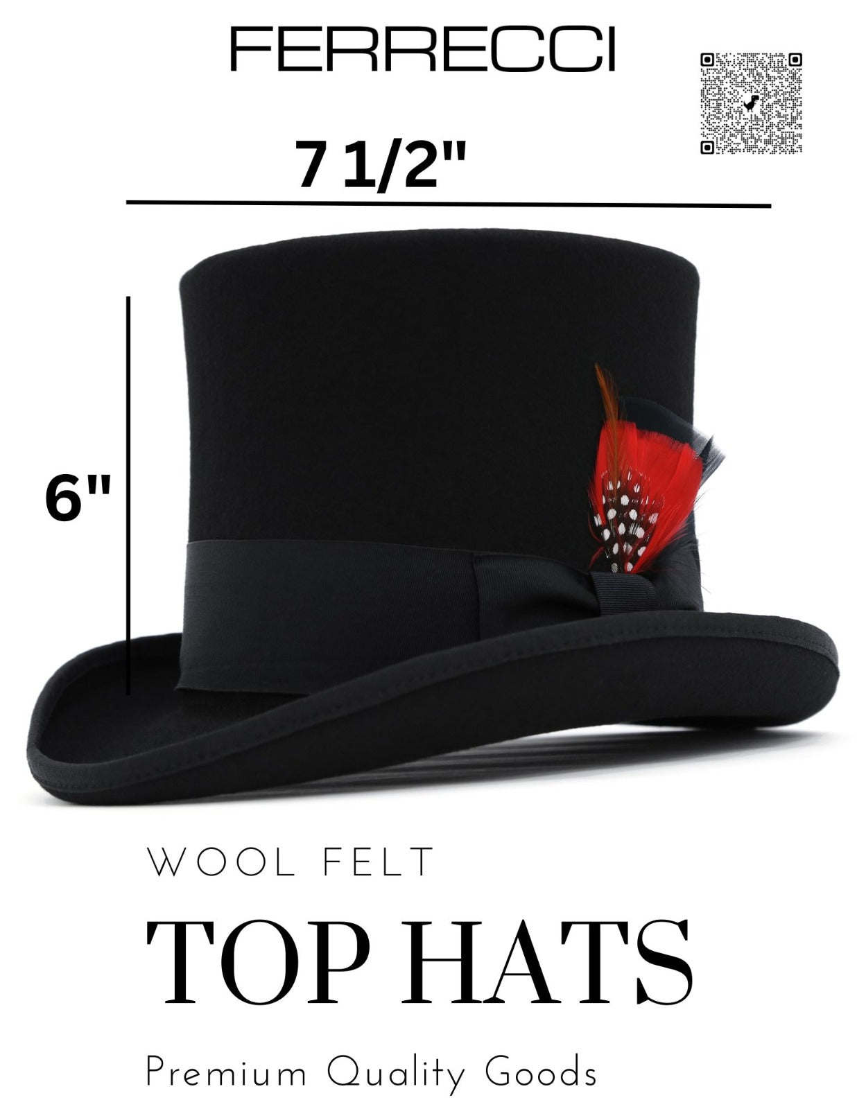 This distinguished and elegant classic formal top hat will add timeless style to any outfit. Constructed of 100 percent wool felt, this hat is finished with grosgrain ribbon trim with a feather accent and has a fully lined plush interior.