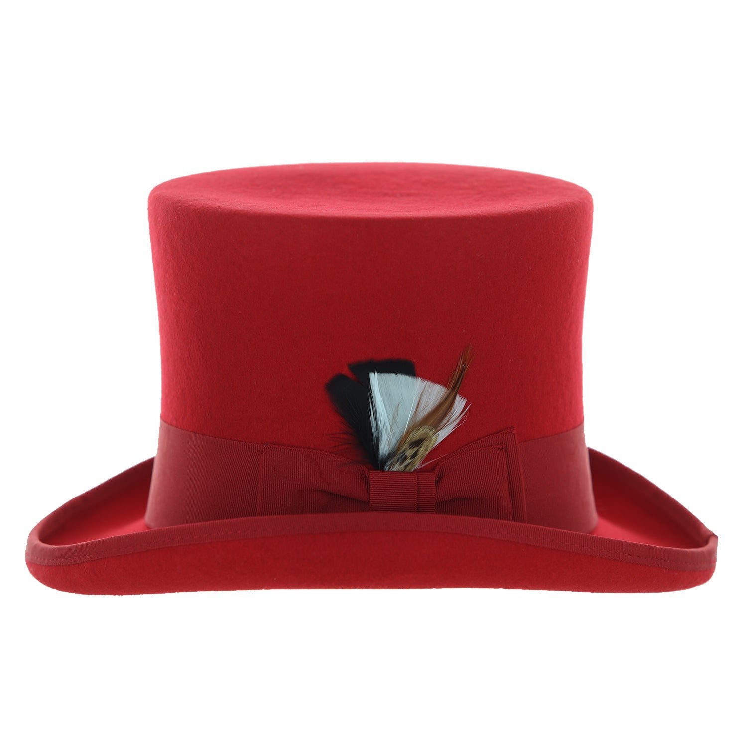 This distinguished and elegant classic formal top hat will add timeless style to any outfit. Constructed of 100 percent wool felt, this hat is finished with grosgrain ribbon trim with a feather accent and has a fully lined plush interior.