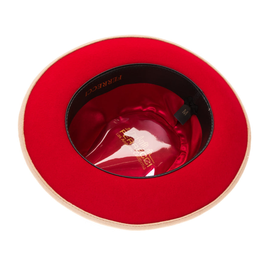 Unique Limited edition Ferrecci Two Tone Hats. Made with 100 % Australian Wool Lined With Luxurious Satin And Lining. Made To Last. This Hat Is Fully Crushable - Stuff It Into Any Suitcase Or Bag And It Will Take Its Shape Again When You Unpack It. The Perfect Travel Hat!
