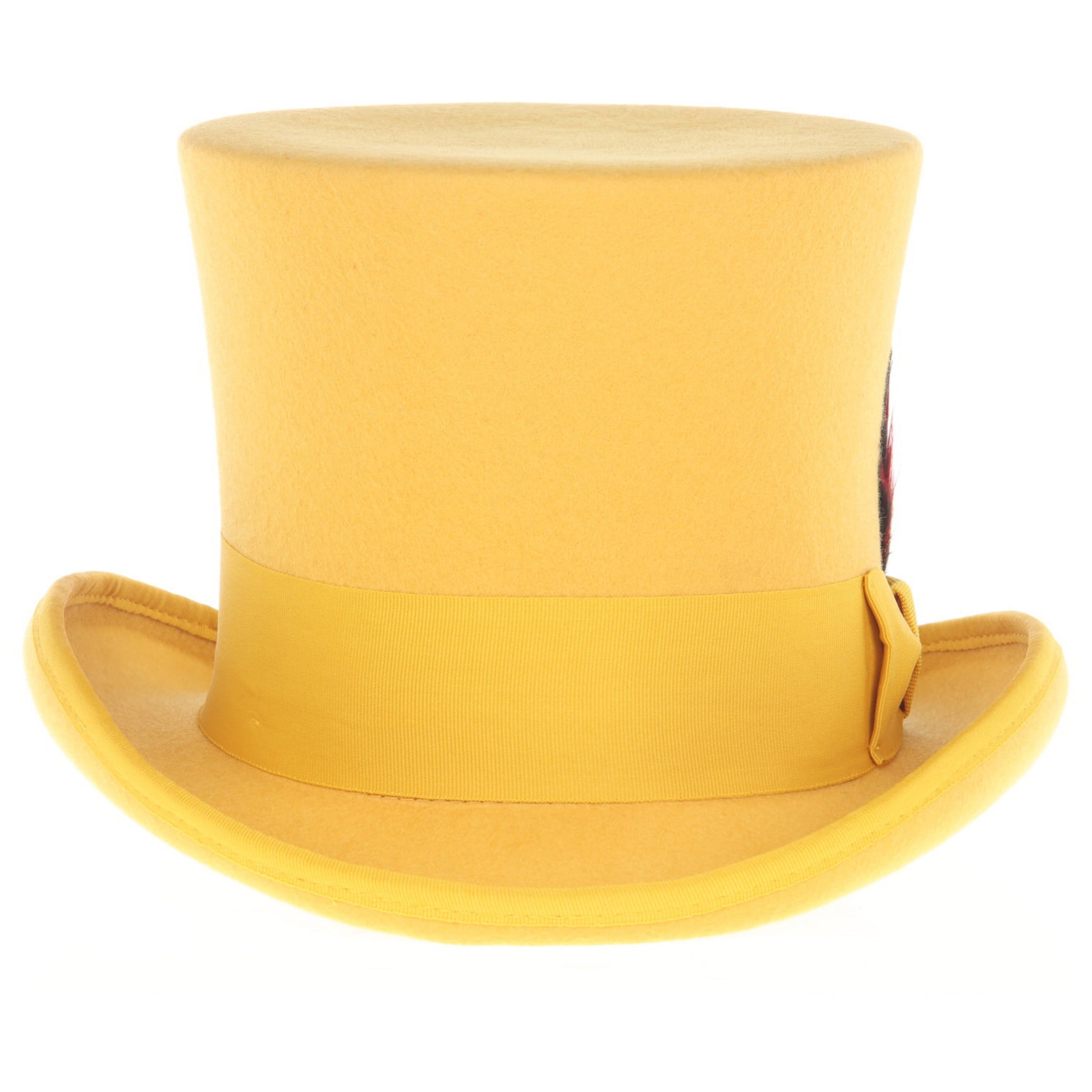 This distinguished and elegant classic formal top hat will add timeless style to any outfit. Constructed of 100 percent wool felt, this hat is finished with grosgrain ribbon trim with a feather accent and has a fully lined plush interior.